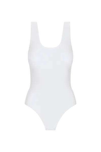 Butter Scoop Neck Tank Thong Bodysuit In White
