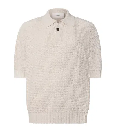 Cotton-blend Pointelle Knit Polo Shirt In White