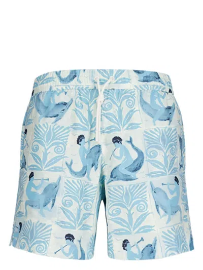 Blue Printed Swim Shorts In Fresco Tile Blue
