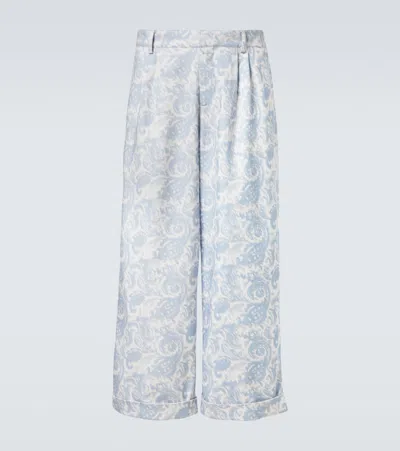 Printed Cotton-blend Wide-leg Pants In Blue