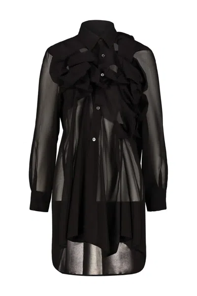 Sheer Fabric Longline Shirt With Buttoned Cuffs In Black