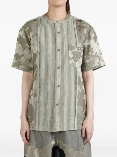 Striped Floral Short-sleeve Shirt In Gray