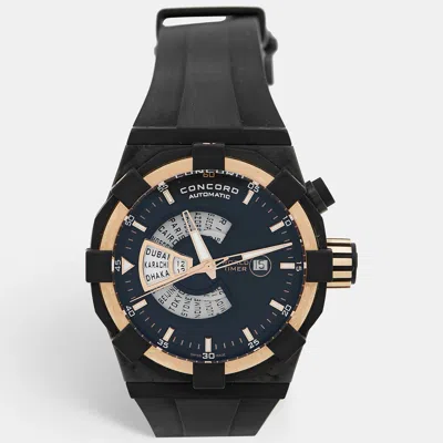 Pre-owned Black 18k Rose Gold Pvd Coated Stainless Steel Rubber C1 World Timer 01.6.78.1016 Men's Wristwatch 4