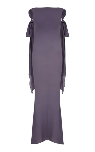 Boat Neck Silk Gown In Purple