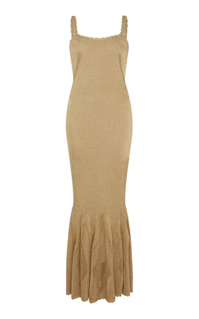 Metallic Knit Gown In Brown