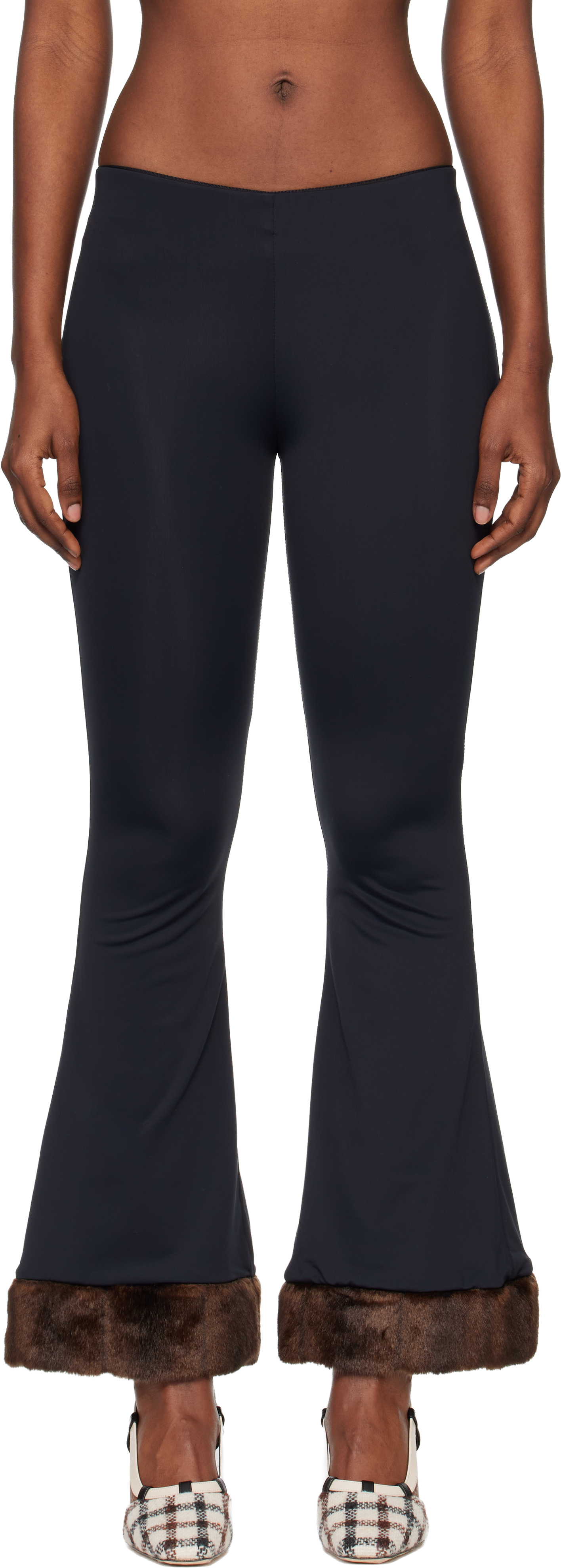 Black Faux Mink-trimmed Lounge Pants