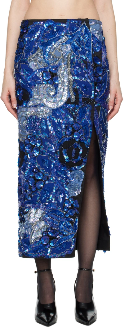 Blue Sequin Maxi Skirt In Multi
