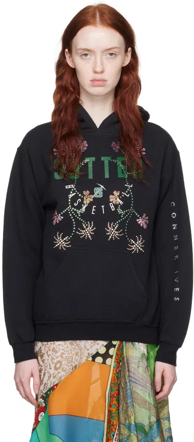 Black Floral Hoodie In Black Multi
