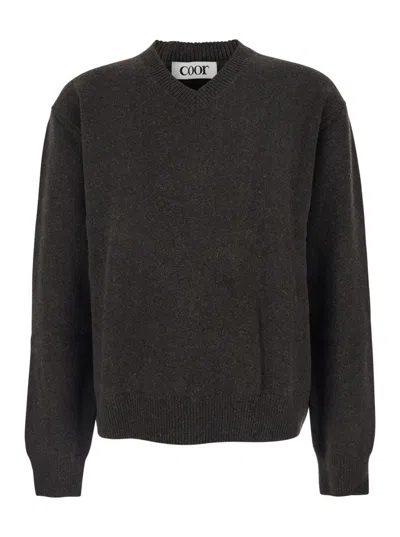Brown Sweater With V Neck And Ribbed Trims In Wool Man In Gray