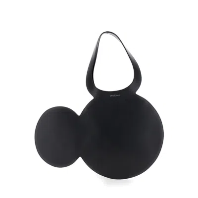 Mickey Black Handbag With Cut-out Handle And Logo Lettering On The Front In Leather