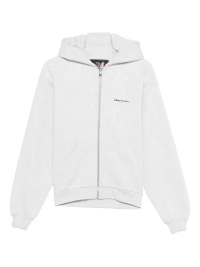 Fitted Zip-up Grey Organic Cotton Hoodie In Animal Print