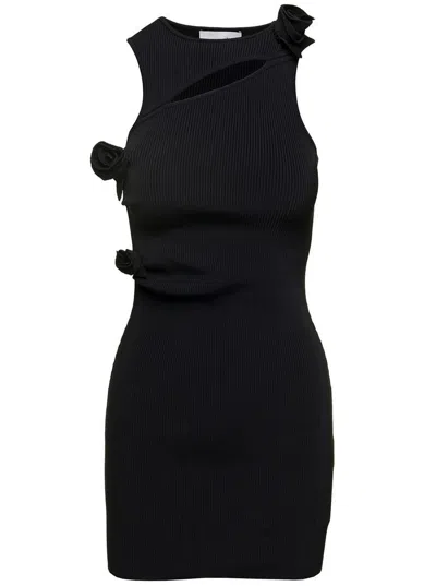 Black Asymmetric Flower Knit Minidress With Cut-out N Viscosa Stretch Woman
