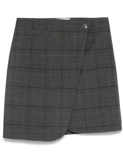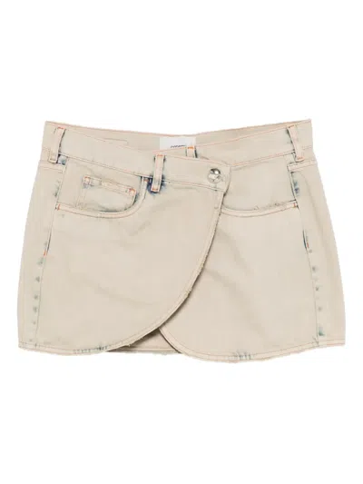 Asymmetric Cotton Denim Mini Skirt In Grey