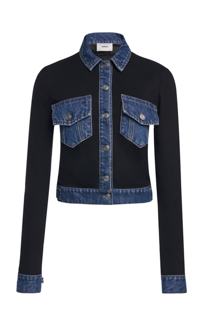 Second Skin Denim-trimmed Ribbed Stretch-lyocell And Cotton-blend Shirt In Black