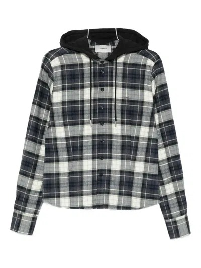 连帽格纹棉质衬衫