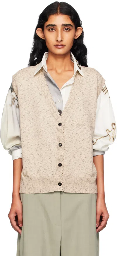 Beige Flecked Cotton Waistcoat Cardigan In Brown