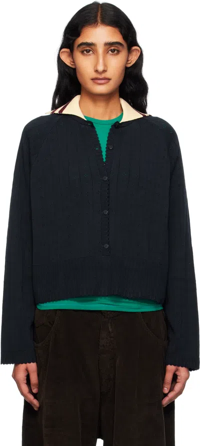 Navy Organic Cotton Long Sleeves Cardigan In Blue