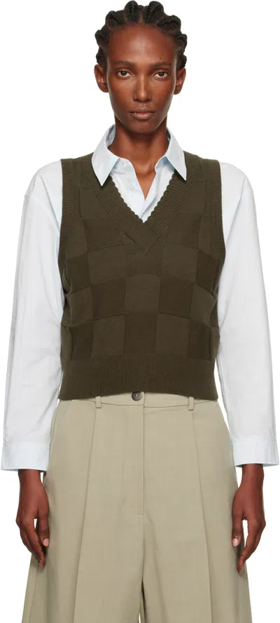 Khaki Checkered Cotton & Cashmere Vest In Green