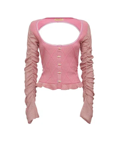 Elena Sweater With Cut-out Detail And Flounces In Pink