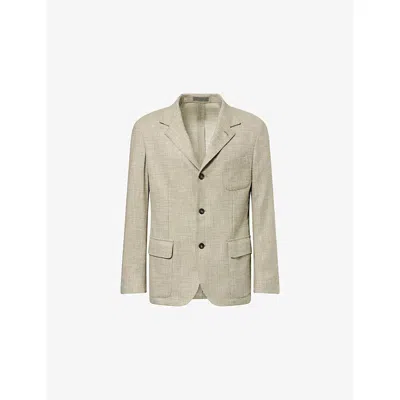 Mens Green Coloured 051 Long-sleeve Wool And Silk Blend Blazer In Gray
