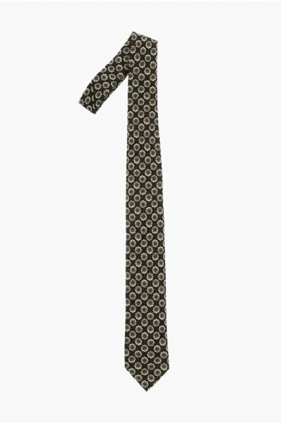 Herringbone Patterned Silk Tie Grösse Unica In Brown