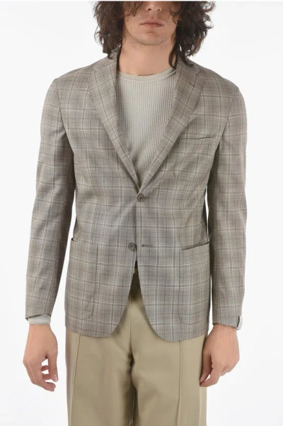 Plaid Checked 2-buttons Sportswear Blazer With Side Vents In Brown