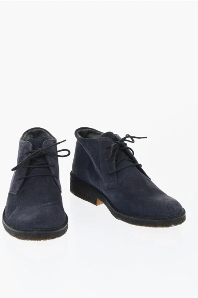 Id Solid Color Suede Desert Boots With Crepe Sole In Blue