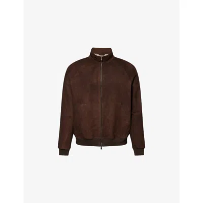 Mens Dark Brown (ebony) Funnel-neck Zip-up Suede Jacket