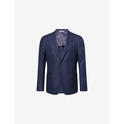 Mens Navy Blue Single-breasted Wool And Linen-blend Blazer