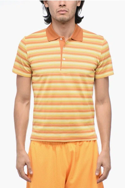Id Striped Short Sleeved Polo In Orange