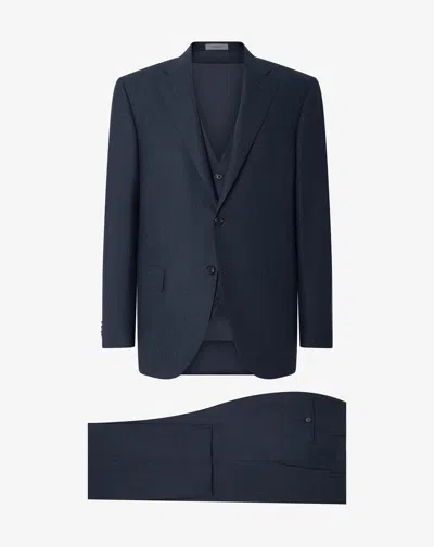 Blue Micropatterned Wool Flannel And Cashmere Suit