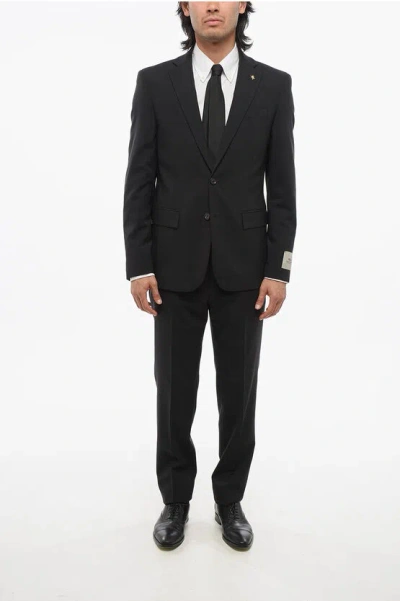 Cc Collection Virgin Wool 2 Buttons Suit With Peak Lapel In Black
