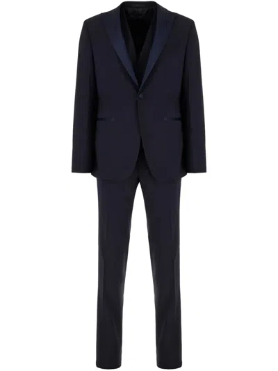 Navy Blue Single-breasted Suit In Pure Virgin Wool