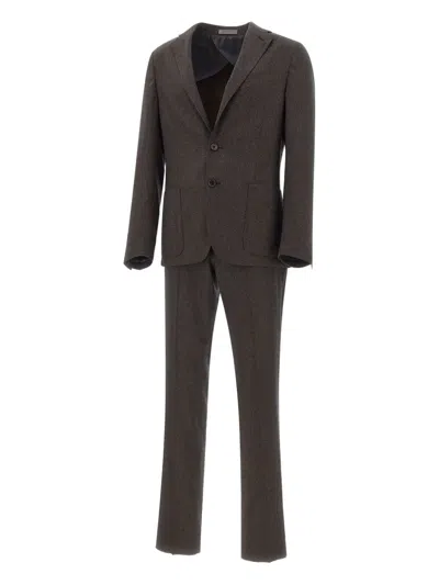 Grey Wool Flannel And Cashmere Suit In Black