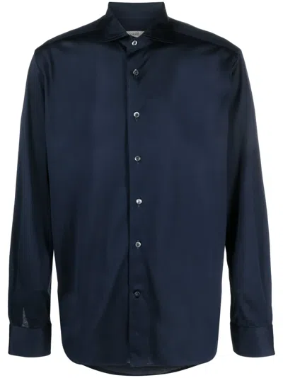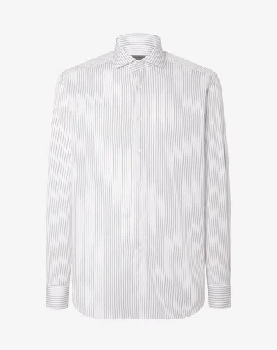 White Cotton Shirt With Blue Micro Stripes In Gray