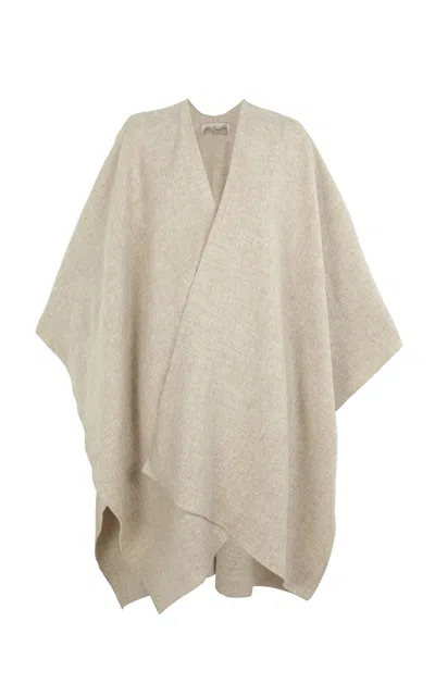 Asymmetrical Wool Poncho Coat In Neutral