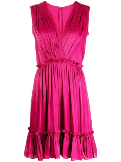 Draped Lurex Mini Dress With Maxi V-neck In Pink