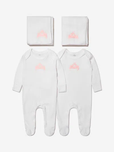 Baby Girls Organic Crown Babygrow And Muslin Set 3 - 6 Mths Pink In White