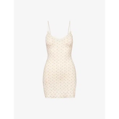 Womens 001 White Pointelle Sleeveless Organic-cotton Mini Dress