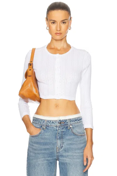 Womens 001 White The Crop Pointelle-pattern Organic-cotton Cardigan