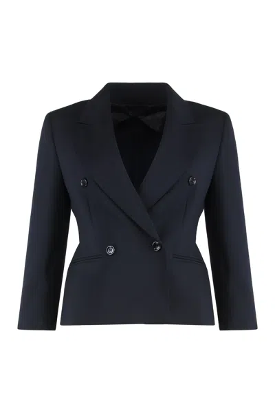 Max Mara Woollen Cloth Cropped Blazer In Blue