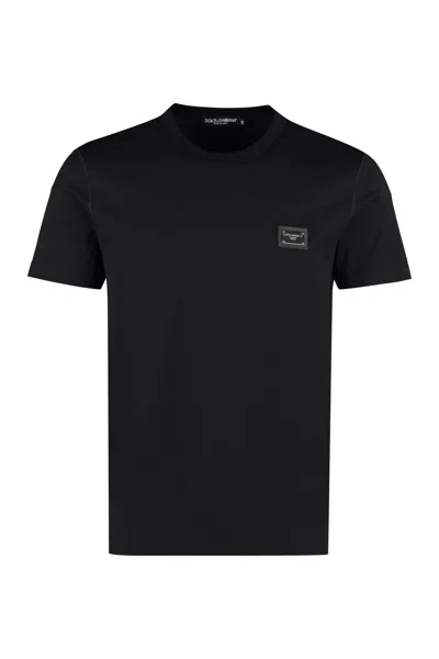 Dolce & Gabbana Cotton T-shirt With Logo Plaque In Black