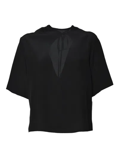 Silk Blouse With Elbow-length Sleeves And Oval Cutout In Black