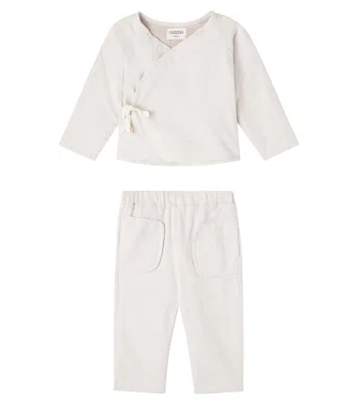 Baby Cotton-blend Cardigan And Sweatpants Set In Neutral
