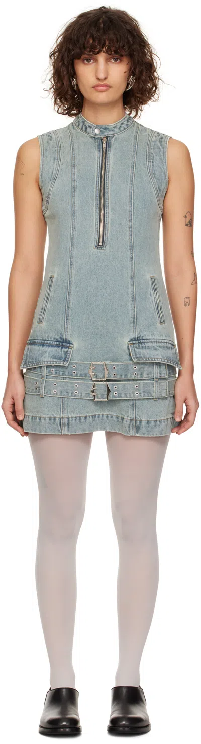 Blue Washed Zip-up Sleeveless Denim Minidress