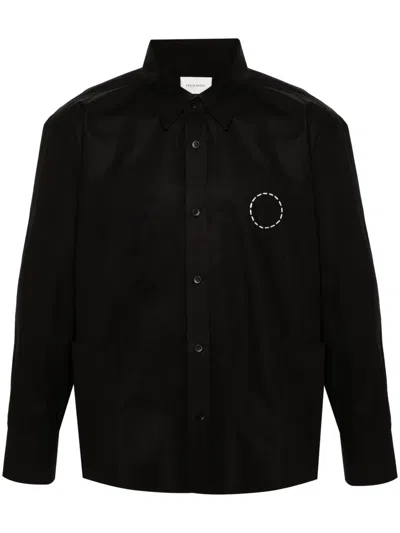 Fluffy Hole Stretch Denim Button-up Shirt In Charcoal Grey