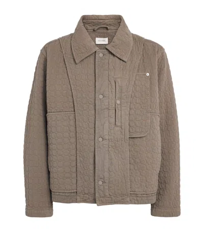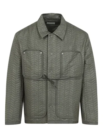 Quilted Cotton Blend Jacket With Adjustable Drawstring In Gray