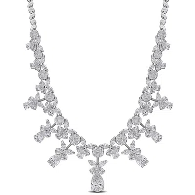 15 1/4ct Multi-shaped Lab Grown Diamond Graduated Bib-style Floral Necklace In 14k W In Metallic