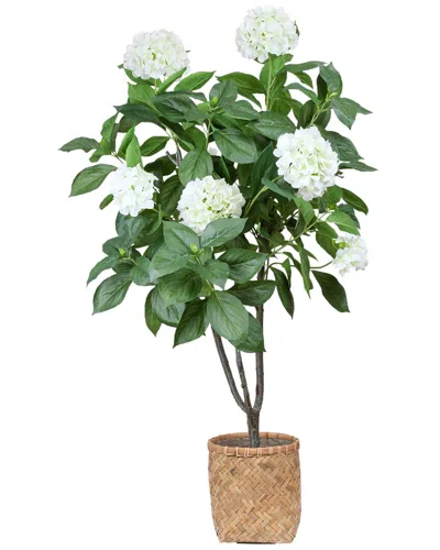 5ft Hydrangea Drop-in Tree With Bamboo-wrapped Cement Pot In Neutral