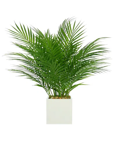 Areca Palm In Square Pot With Rocks & Water In Green